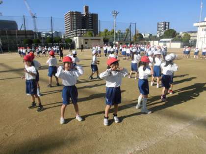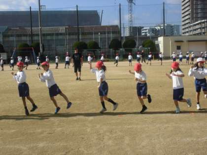 1,2年生が運動会のダンスの練習をしました。細かいところに気を付けて確認しながらがんばっていました。