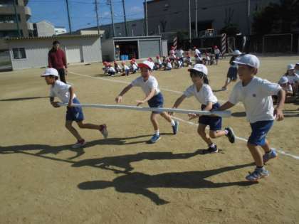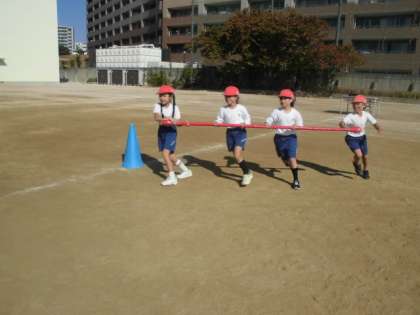 3年生は、運動会で団体演技と団体競技「台風の目」を行います。練習を繰り返すことでどんどんチームワークが良くなってきています。
