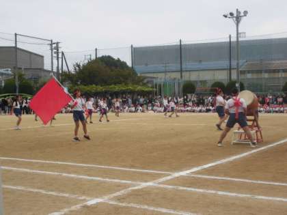天気は曇っていましたが、運動会を実施することができました。応援合戦は、応援団と全校児童が一体となって応援を行うことができました。
