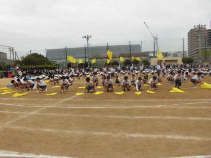 5,6年生は、フラッグだけでなく一つ一つの演技を何度も何度も失敗しながら、ねばり強く取り組んでいました。その成果をしっかりと発揮することができました。