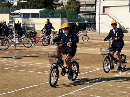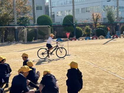 高学年は正しい自転車の乗り方を学んでいます。みんな集中していました。