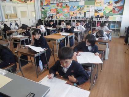 今日と明日は、大阪市学力経年調査の日となっています。1日目は、国語と社会でした。2日目は、算数と理科と5,6年生のみ英語です。みんながんばっていました。