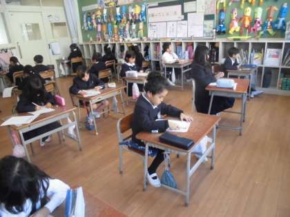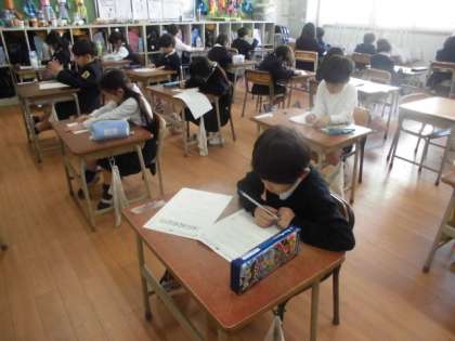 1,2年生は、大阪市学力経年調査がないため学校で作成した実力テストを行いました。科目は、国語と算数です。みんな集中して取り組んでいました。