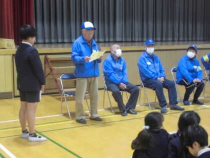 毎日子ども達の安全を見守っていただいている見守り隊の皆さんに感謝する会を開きました。初めに見守り隊の皆さんに自己紹介をしていただきました。その次に質問に答えていただきました。見守り隊の皆さんのことがとてもよくわかりました。