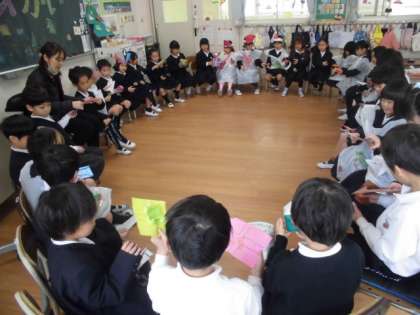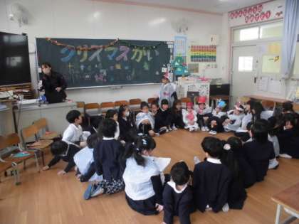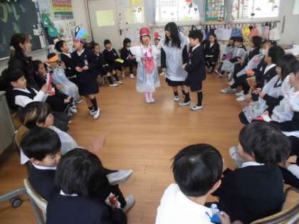1年生が、学級会で話し合って計画したクリスマス会を行いました。ハンカチ落としや、フルーツバスケット、プレゼント交換などを行いました。みんなで楽しむことができました。
