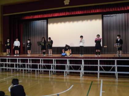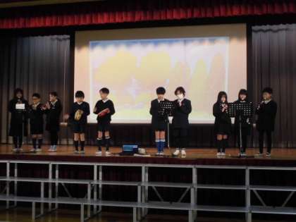 4年生は、総合的な学習で調べ学習をしたことをもとに学習発表会で「未来へつなげ!日本一周ツアー」という発表をします。今日はセリフとグループごとの合奏の練習に取り組みました。