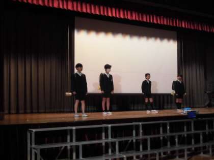 5年生は、学習発表会で「探しに行こう!僕らの色を」という劇をします。しっかりセリフを覚えて大きな声を出し、講堂で練習を頑張っています。