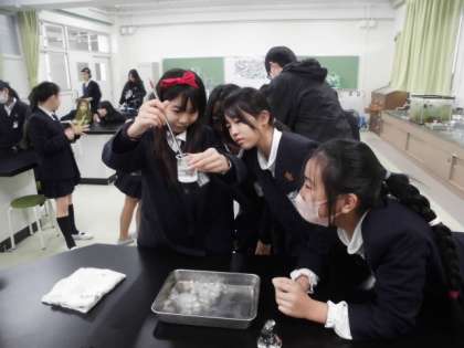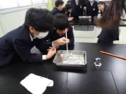 5年生が、理科で水に溶けているミョウバンを取り出す実験をしました。氷を使ってどの班も取り出すことができました。次は結晶づくりを行います。