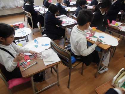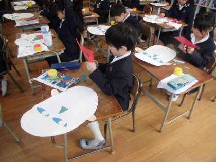 2月5日 1年生 図工「かみはんが」