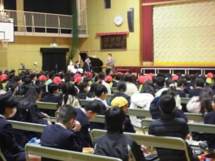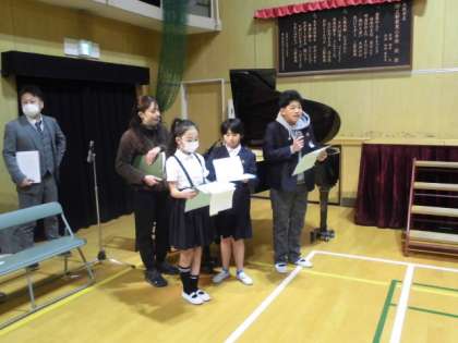 学習発表会の児童鑑賞会を行いました。代表委員会の児童が司会をしました。