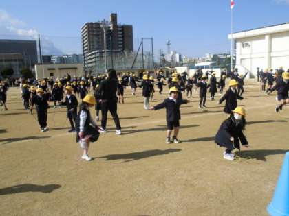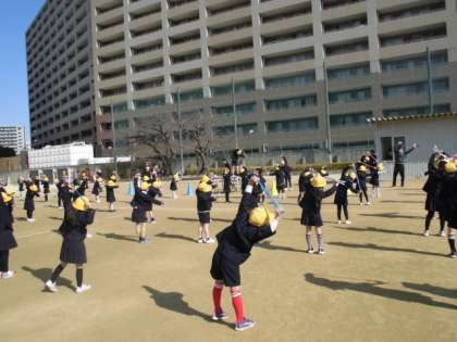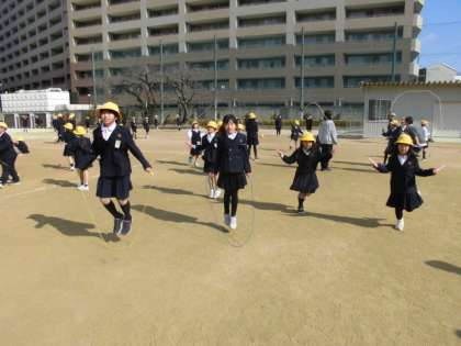 2月は、「なわとび月間」で20分休憩に「かけあし集会」があり、体育の時間にも「なわとびカード」の種目等に挑戦します。今日は、1回目の「かけあし集会」でした。運動委員会の見本に合わせてみんなで跳びました。