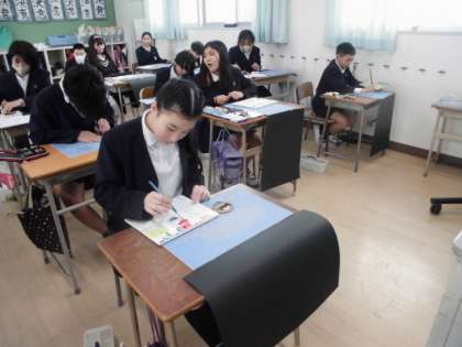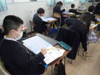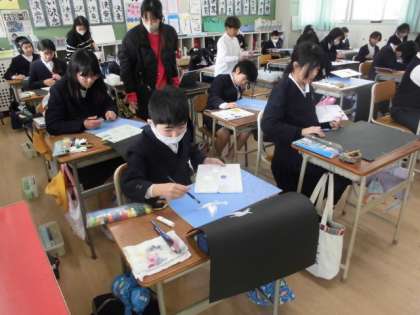 5年生が、図工で多色刷り版画を行いました。絵具をつけては刷ることを粘り強く繰り返していきます。ずれないように集中して丁寧に取り組んでいました。