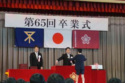3月18日(火)、第65回卒業式を行いました。6年生62名が、晴れの門出に堂々と胸を張って卒業しました。在校生代表として参列した5年生もとても立派でした。卒業生の今後の活躍に期待しています。