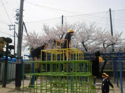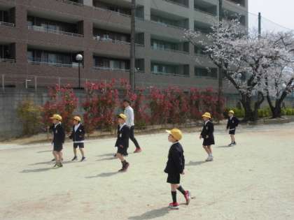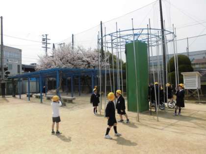 今日は天気も良く桜も満開の中、休み時間には運動場で元気に遊ぶ子どもたちの姿が見られました。みんな笑顔で思いっきり遊んでいました。ドッジボールをする先生たちも楽しそうにボールを投げていました。