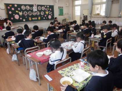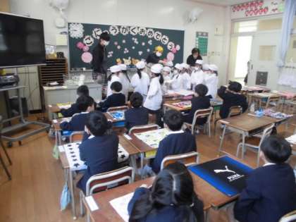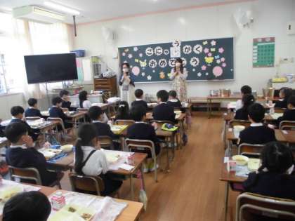 今日は1年生初めての給食でした。給食当番も先生から丁寧に説明をしてもらい、上手にすることができました。牛乳パックを開けるのに苦労して、何人かは少しこぼしてしまいましたが、何とか飲むことができました。みんなおいしかったと満足そうにしていました。