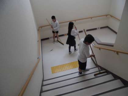 そうじも始まりました。それぞれ自分の役割の場所を熱心にそうじしていました
