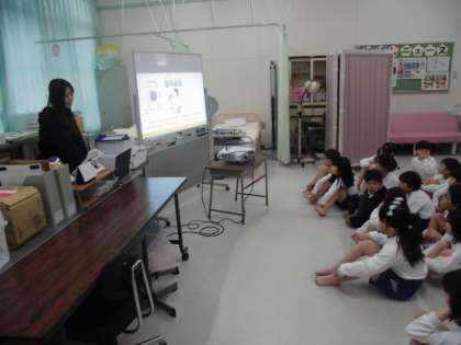 2年生が発育測定をしました。発育測定の前には、これから行われる検査について詳しく説明してもらいました。