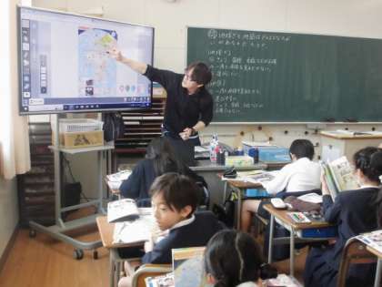 5年生は、社会で「世界から見た日本」の学習をしています。今日は地図の見方について地図帳を見ながら学習し、いろいろなことに気付いていました。
