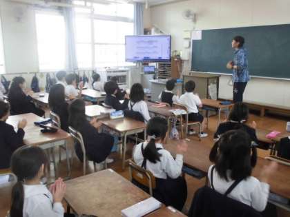 2年生が音楽で「朝のリズム」の学習をしました。リズムに合わせて手をたたいたり、足を踏み鳴らしたりして楽しく学習しました。みんな音楽をよく聴いて、集中して取り組んでいました。
