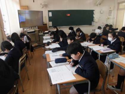 5年生は、大阪府の学力調査のすくすくウォッチを行いました。教科は、国語、算数、理科とワクワク問題です。ワクワク問題というのは、教科横断型の問題です。5年生も集中して取り組んでいました。