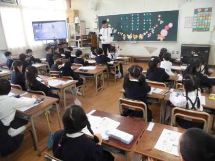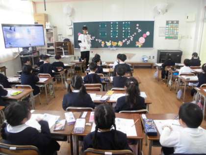1年生は、ひらがなの学習をがんばっています。集中して先生のお手本を見て、その後練習をしました。