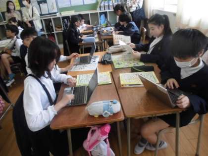 6年生は、給食の献立について学習しました。グループに分かれて考えました。