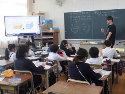 5年生も、習熟度別少人数学習で算数の授業を行っています。今日は体積の学習でした。立方体や直方体の図形を作って、体積を比べていました。たくさん発言して積極的に学習を進めていました。