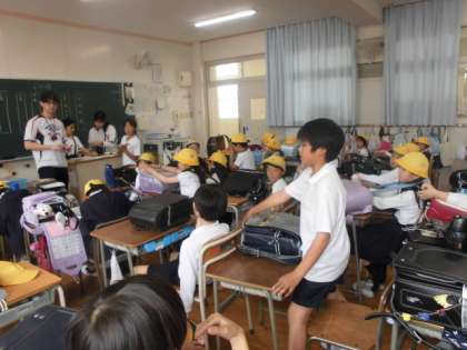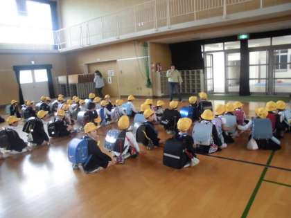 第1回目の地区分団集会がありました。6年生が1年生を迎えに行きました。1年生は初めての地区分団集会でしたが、先生や分団長の話を一生懸命に聞いていました。通学路の危険個所などをしっかりと話し合うことができました。