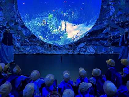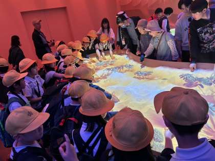 3年生は、クウェートパビリオンに行きました。クウェートの発展や歴史を学んだり現地の砂に触れたりしました。