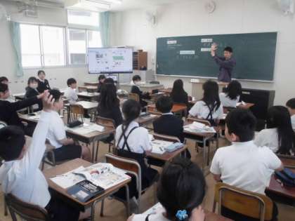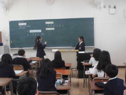5年生が、外国語の学習をしています。相手を探して会話の練習をしました。一番たくさんの人と会話をした二人に前で見本を見せてもらいました。とてもなめらかに会話をすることができていました。