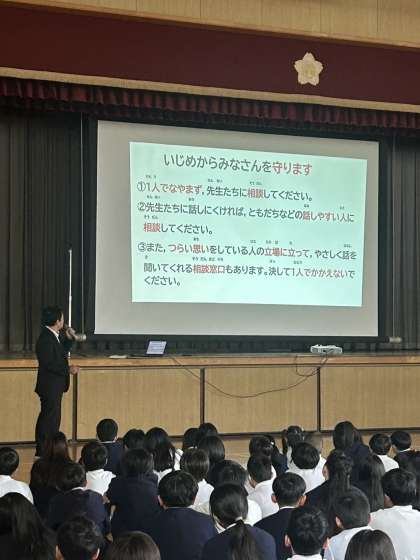 今日は大阪市が定める「いじめについて考える日」です。児童朝会では。「わたしのいもうと」という絵本を読みました。昨年にお話をした「いじめの矢」が抜けた後も心には傷が残ってしまうということについてこの本を読みながら、みんなで考えました。