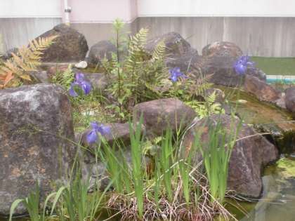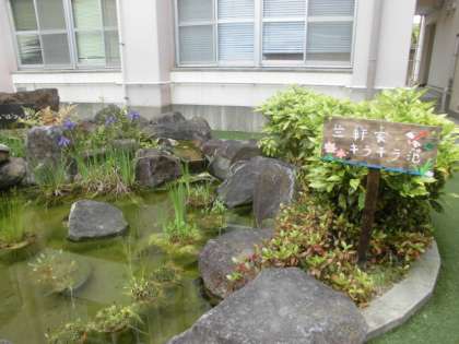 三軒家キラキラ池のカキツバタがとてもきれいに咲いています。ずっと岩の下に入っていたカメのノコノコも動き出しました。クロメダカも元気に泳いでいます。