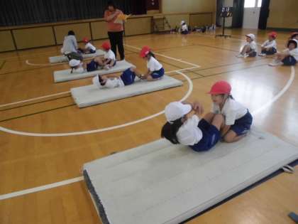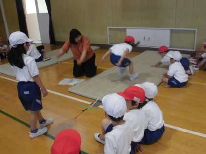 1年生が、スポーツテストを行いました。初めてのスポーツテストでしたが、先生の話をしっかり聞いて一生懸命がんばっていました。