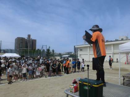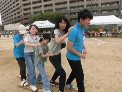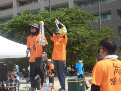 ムカデ競争の次はウルトラクイズでした。最後まで残った人には、お菓子でできたランドセルやショルダーバックがもらえました。みんな真剣にクイズに答えていました。