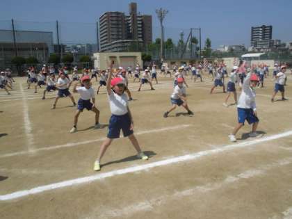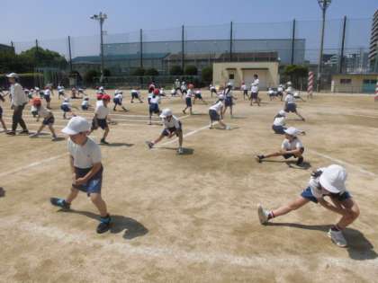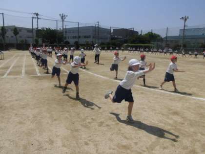 3,4年生の運動会の団体演技「南中ソーラン」も運動場でがんばっています。隊形移動も入ってきてみんな集中して取り組んでいます。