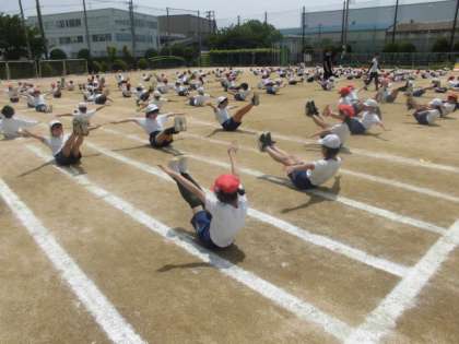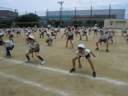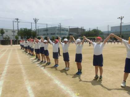 5,6年生が運動会の練習を運動場で行っています。今日は隊形移動の確認を最後まで通しました。子どもたちの集中力もどんどん高まっています。