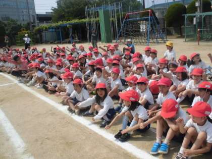 応援団の練習では、全校児童で声をそろえて一体感のある応援合戦をすることができました。