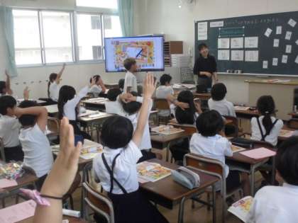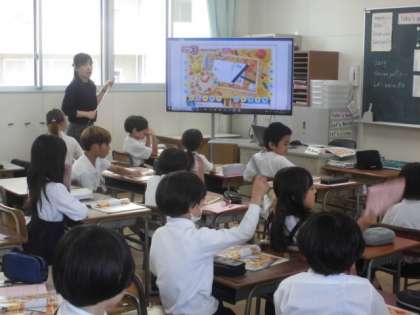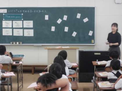 3年生が外国語活動で、1〜20までの数字について学習しました。隠されている数字を当てたり、先生が指した数字を言ったりする活動をしました。みんな自信をもって堂々と大きな声で言うことができていました。