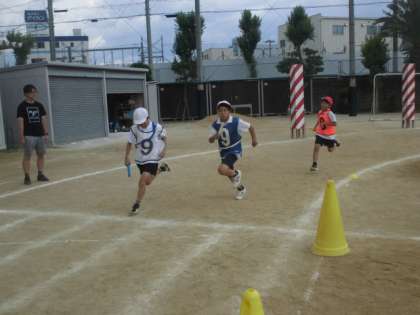5,6年生は運動会でリレーを行います。今日は最後の練習です。運動会当日は、今まで練習してきたバトンパスがうまくできるか楽しみです。