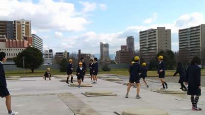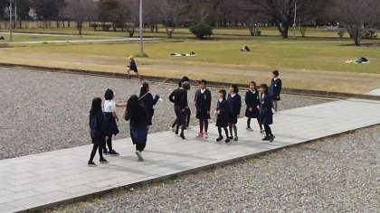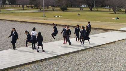 お弁当の後は少しの時間でしたがリラックスタイムです。難波宮跡で、思い思いに休憩時間を楽しみました。