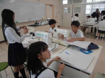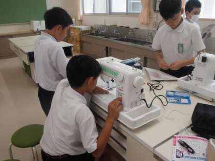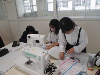6年生がミシンを使ってナップザックを作っています。糸が絡まったり、抜けてしまったりしてなかなか思い通りにいかない人もいますが、粘り強くがんばっています。