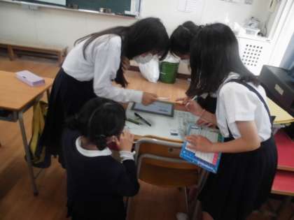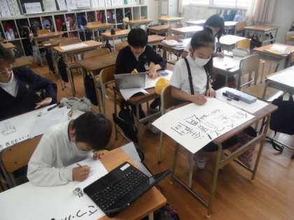 ポスター作りや新聞作りなども取り組まれていました。出来上がったポスターなどは廊下に掲示されています。