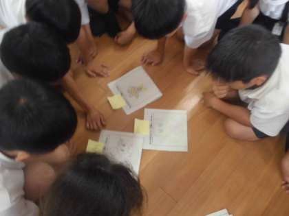 150周年記念行事に向けて、三軒家東小学校のキャラクターを作ることになりました。全校児童にアイデアを出してもらいました。それを児童会で3つ候補を選び、それぞれの候補の作品の良さを発表してもらい、最後は全校児童の投票で決めることになりました。
