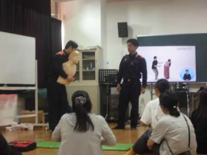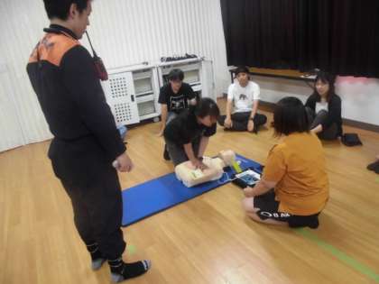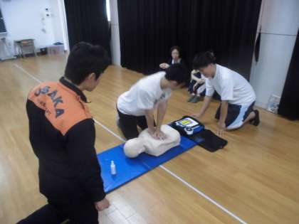 教職員の救命救急講習で、心肺蘇生法やAEDの使い方、気道異物除去法等の講習をしました。いざという時に適切な応急手当てができるようにしっかりと受講しました。