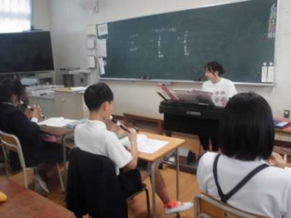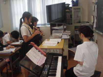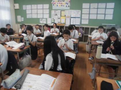 6年生が、音楽でマルセリーノの歌のリコーダーのテストをしました。指使いやタンギングがしっかりできるよう集中してみんながんばっていました。
