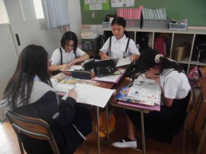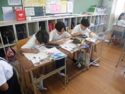 6年生が、社会で「米作りが始まるとどうして争いが起こったのか」を考えました。6年生はこの単元では、自由進度学習を行っています。自分たちで学習計画を立て、自分のペースで学習を進めています。自分たちで学び方を選び、学びを共有したり、互いに教え合ったりしながら学習を進めています。
