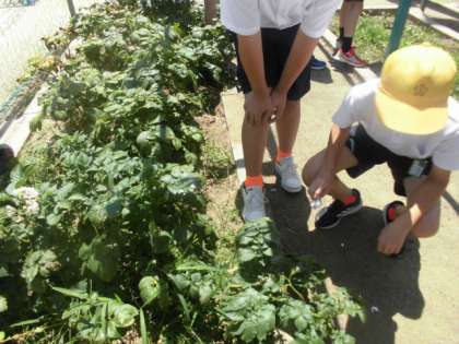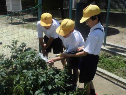 6年生が、理科で植物の体のはたらきの学習をしました。ジャガイモの葉にビニル袋をかぶせて、呼吸や光合成について気体検知管を使って調べました。実験の結果をしっかりと考察しました。