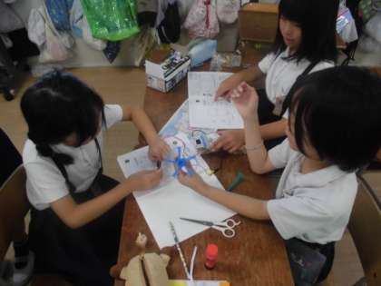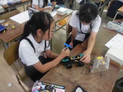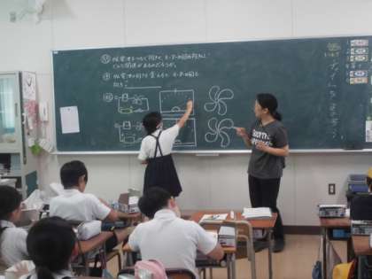 3年生が理科で、乾電池を使って電気の通り道について実験を行いました。協力して実験をしまとめることができました。