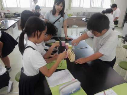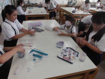 クラブ活動がありました。科学クラブは、「虹の水」に挑戦しました。絵の具に塩を混ぜて虹のような模様を作りました。図工クラブは、瓶の中にいろいろなものを入れて「スノードーム」の夏バージョン「サマードーム」を作りました。運動クラブは、雨のため全部のクラブでソフトバレーボールをしました。どのクラブも楽しそうに活動していました。