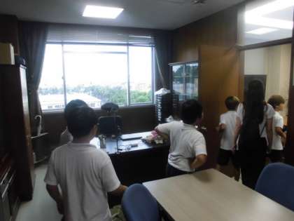 続いて、区役所の見学に来ました。区役所ではどんな仕事をされているのか詳しく説明してもらいました。区長室も見学させてもらいました。